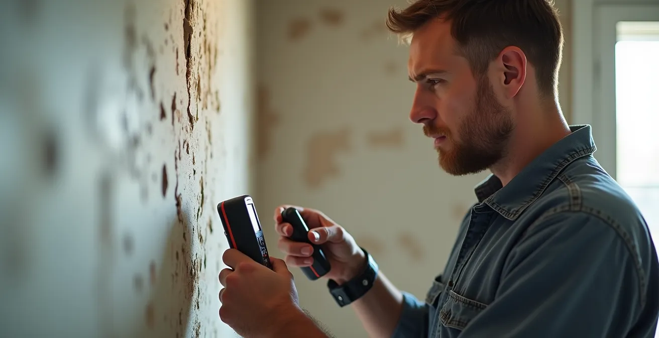 Ne pas se fier à la sécheresse de surface. L’humidité piégée dans les matériaux met plus de temps à s’évacuer. Un professionnel utilisera un hygromètre pour vérifier en profondeur et éviter le risque de moisissure future.