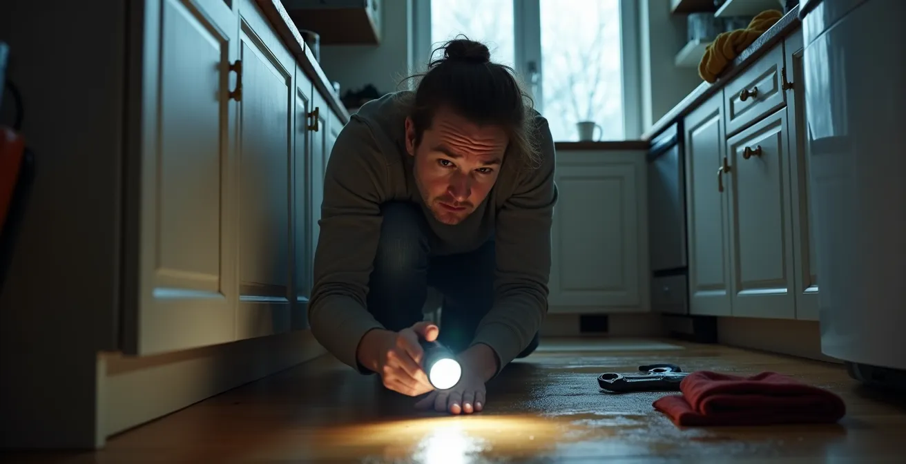 La première question en pleine crise est : « Est-ce que ça peut attendre ? » En tant qu’entrepreneur, je peux vous dire que la plupart des appels de nuit ne sont pas de vraies urgences. Cependant, trois scénarios imposent une action immédiate, peu importe l’heure. Le premier est une fuite d’eau active et incontrôlable. Si vous avez fermé l’entrée d’eau principale et que l’eau continue de couler, c’est un signe que le problème se situe en amont ou qu’une autre source est en cause. Chaque minute d’attente aggrave les dommages structurels et le risque de moisissure.