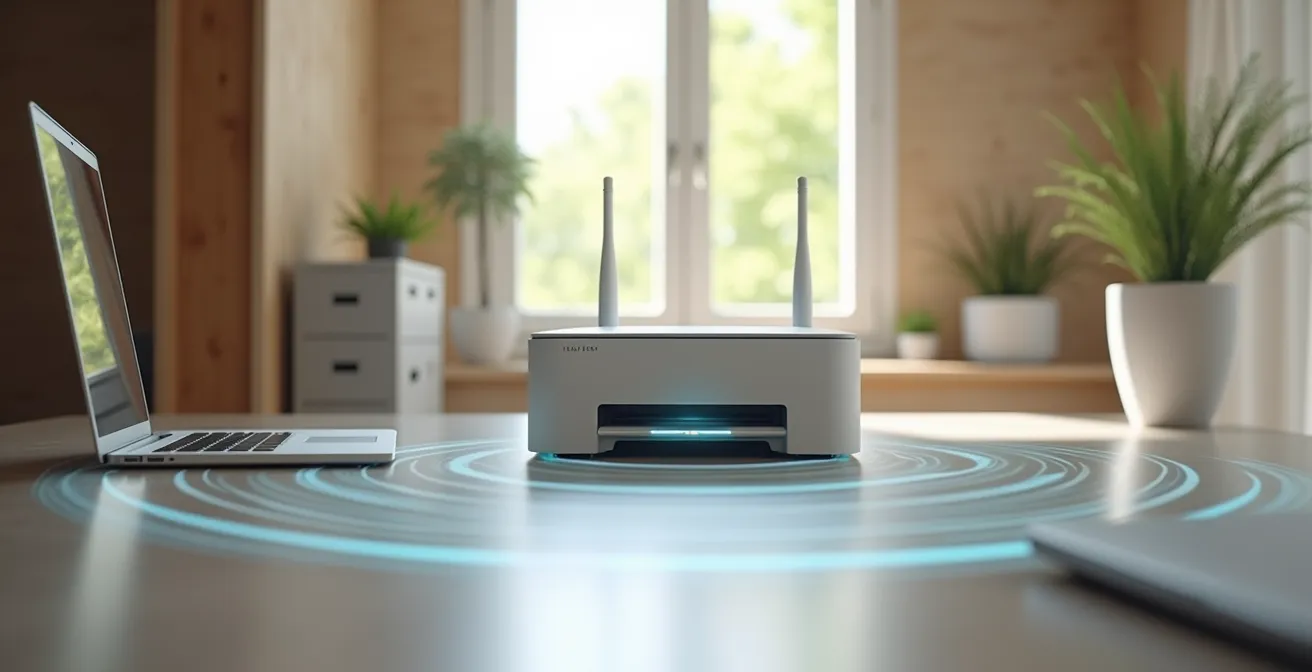 Maintenant que nous avons sécurisé les appareils sur le réseau, revenons à la source de tous les maux de connexion, y compris celui de notre fameuse imprimante : le routeur Wi-Fi lui-même, et plus précisément, son emplacement. Par commodité, lors de l’installation par le technicien, le routeur est souvent placé là où le câble arrive dans la maison : dans le placard électrique du sous-sol, à côté du panneau de disjoncteurs. C’est la pire erreur que vous puissiez faire pour la qualité de votre signal.